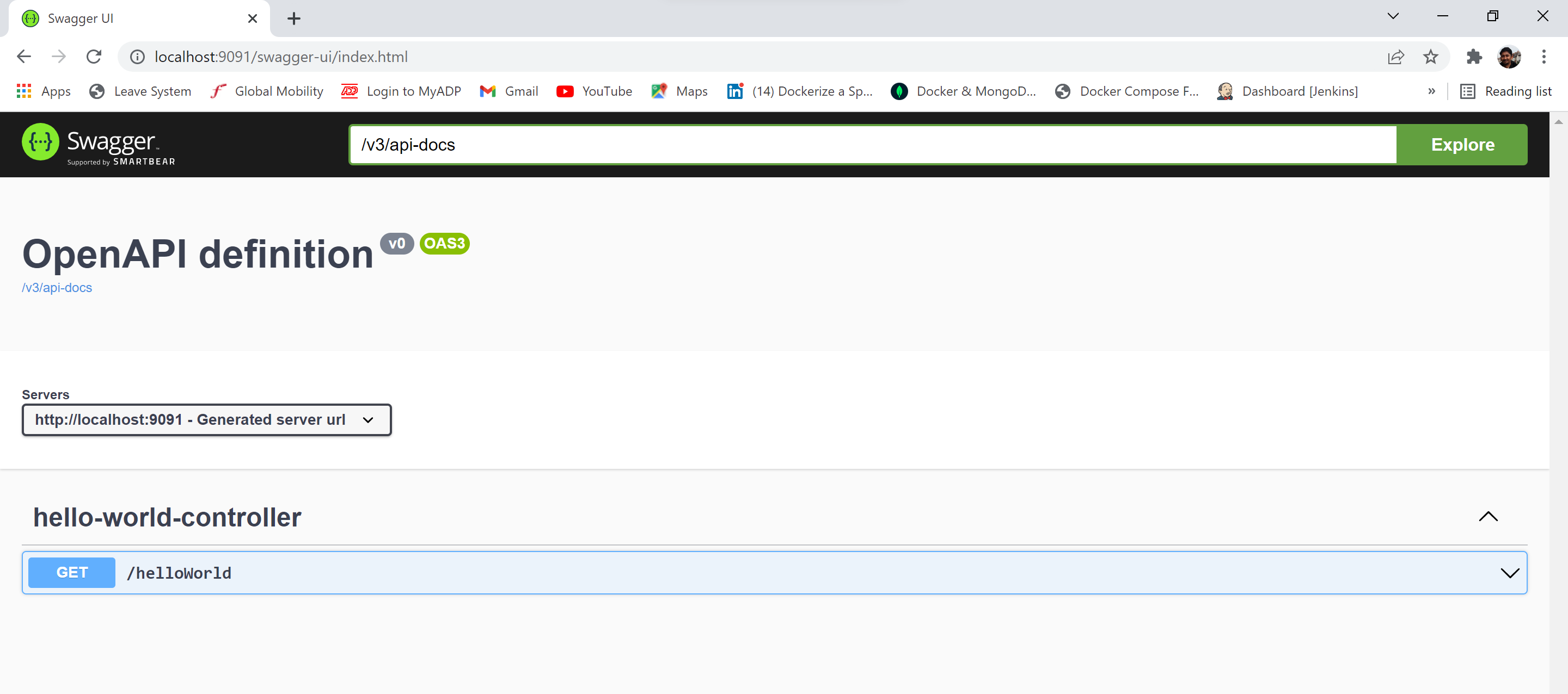 我创建了一个简单的Springboot应用程序,它运行在我的本地主机端口编号9091上,返回"Hello world!“当调用http://localhost:9091/helloWorld url时。