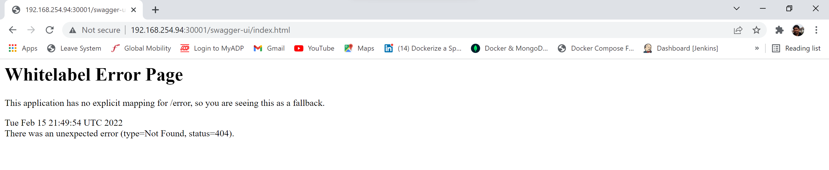 但是,当我试图使用下面的url http://192.168.254.94:30001/swagger-ui/index.html访问Springboot的swagger-ui时,我会看到下面的Whilelabel错误页面