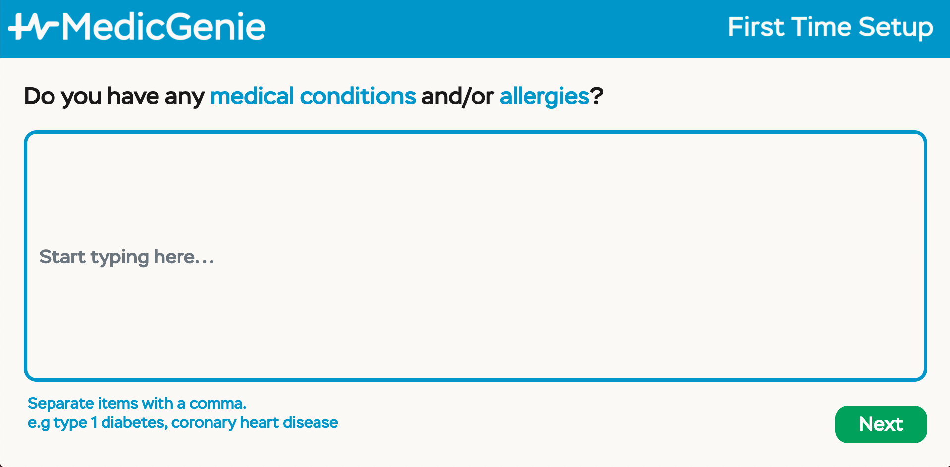 <p class="brand fs-2 me-auto">Separate items with a comma. <br> e.g type 1 diabetes, coronary heart disease</p>