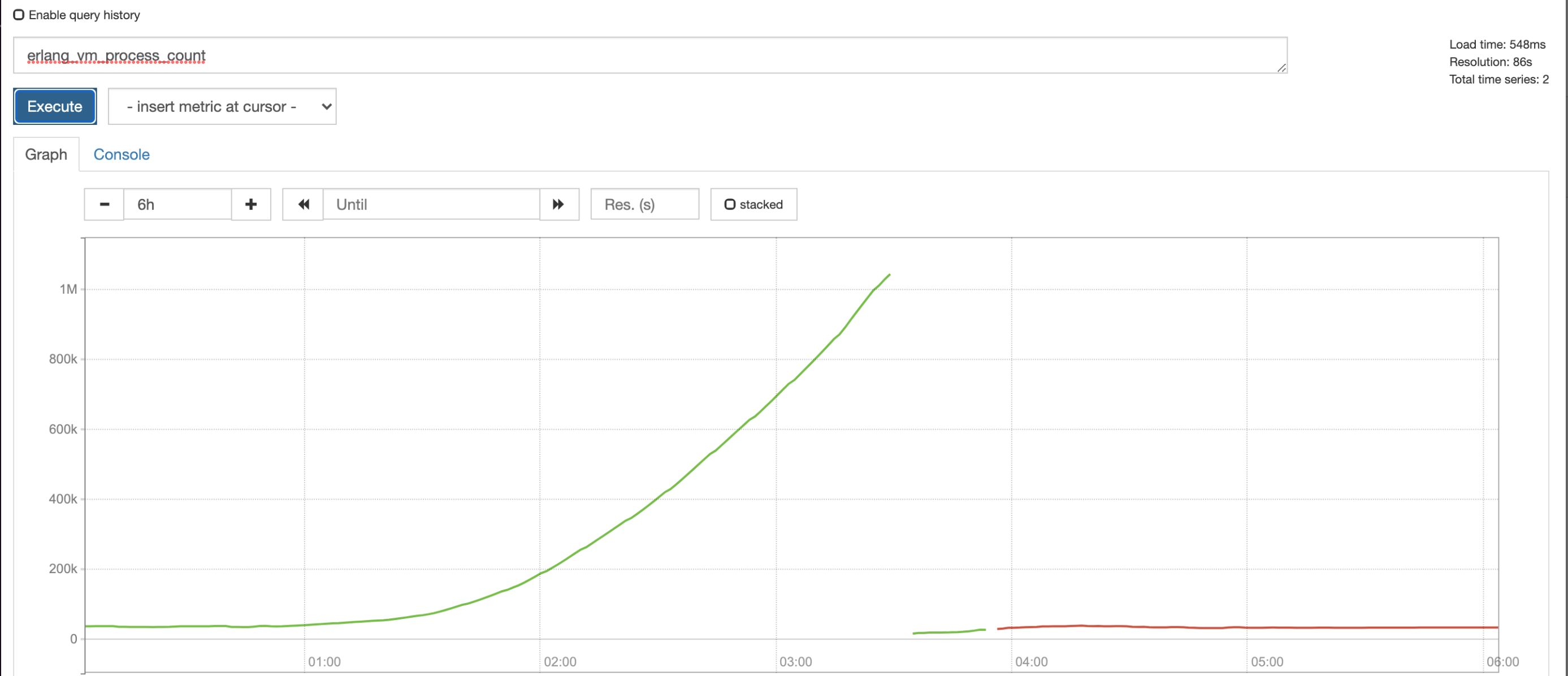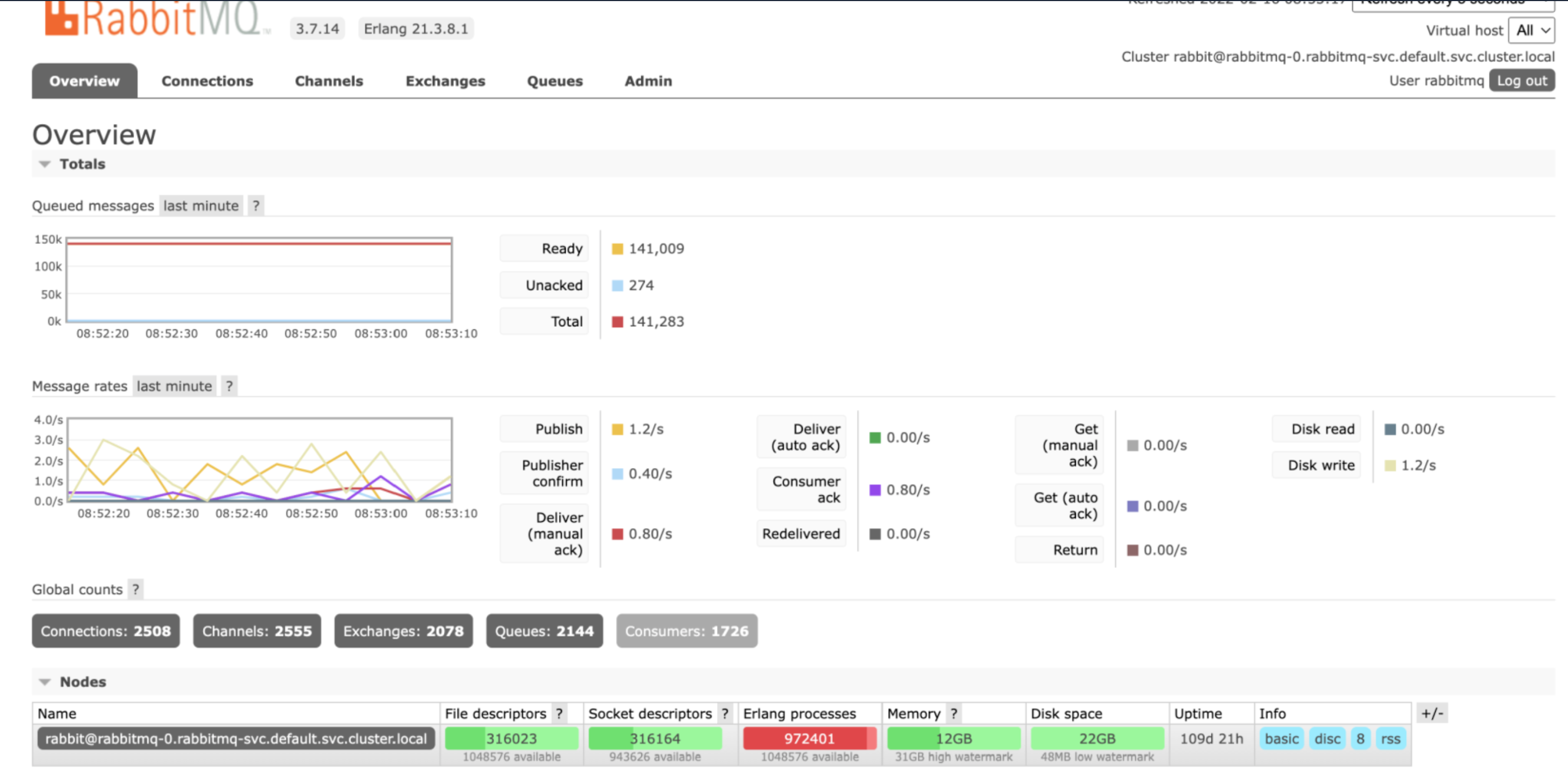 RMQ版本: 3.7.14 Erlang版本: Erlang 21.3.8.1 RMQ作为有状态集在Kubernetes上运行。RMQ进程峰值。