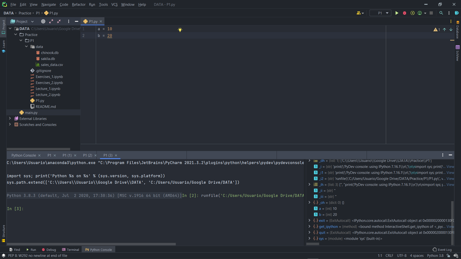 问题是,我不知道为什么Python控制台在右下角显示了这么多变量,而不仅仅是代码中的变量。是因为目录吗?