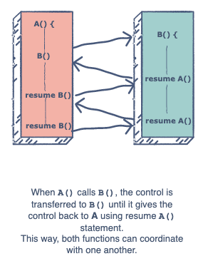 在底层,这两个概念都建立在函数(或调用函数堆栈)停止执行并将执行控制权转移到其他人的能力之上。这是在期望控制最终会返回给暂时放弃执行的函数的情况下完成的。