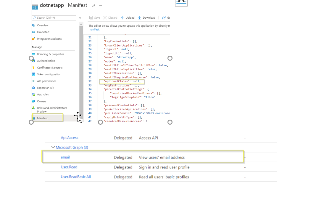 ....在.NET核心中,我使用的是Microsoft.Identity.Web,在发送Azure Active Directory登录请求之前,我还没有找到设置作用域的位置。如果在登录页面发生时手动编辑URL,则可以通过将电子邮件添加到URL查询字符串中的作用域来获取电子邮件声明。