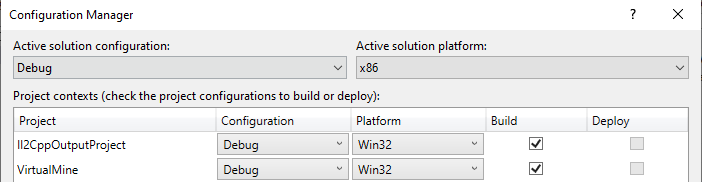 但是当我在VS中打开项目时,我无法选择一个部署平台(start是唯一的选项)