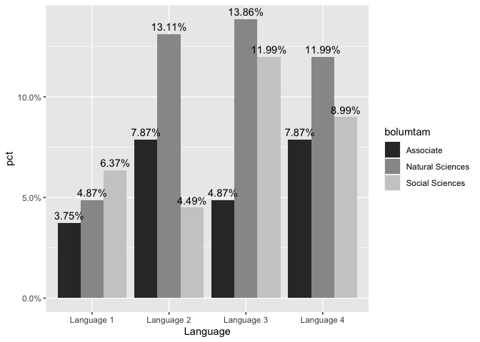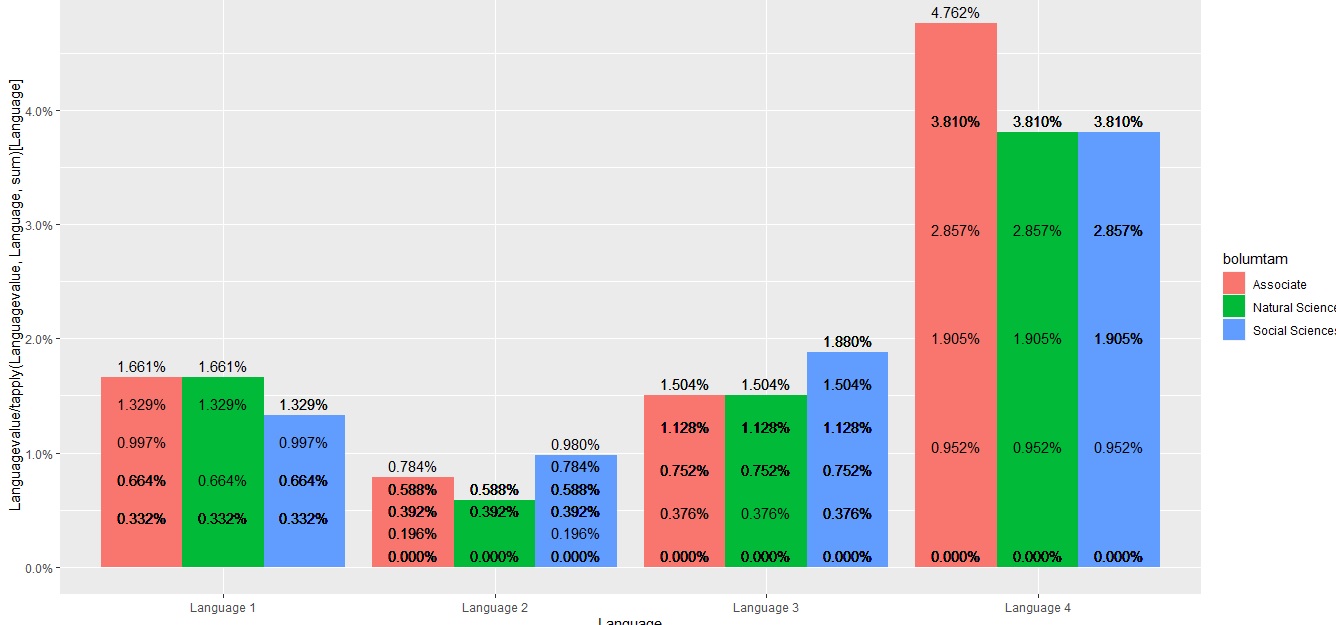 geom_text(aes(label = scales::percent(pct), group = bolumtam), position = position_dodge(0.9), vjust = -0.5) +