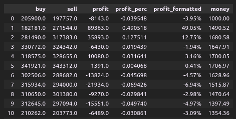 curr_money = round( money[i-1] * (1 + ops_df.profit_perc.iloc[i]), 2 )