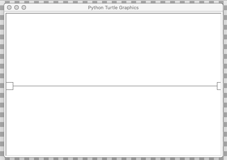当我们为setup()指定窗口大小时,我们指的是屏幕上使用的总像素。因为窗口周围有铬元素(边、标题栏等)。我们工作的实际面积要小一点。试图将两只海龟放置在左右边缘,忽略了铬: