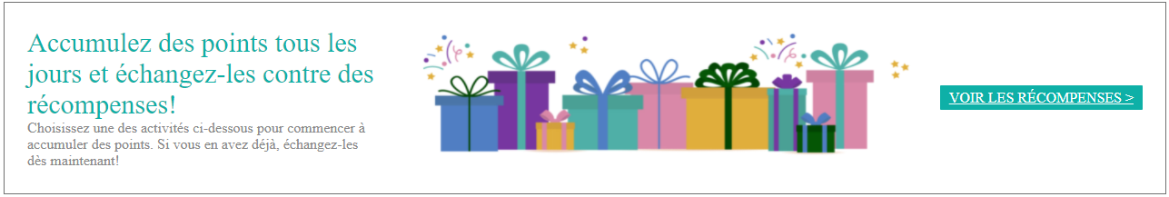 subtitle = 'Choisissez une des activités ci-dessous pour commencer à accumuler des points. Si vous en avez déjà, échangez-les dès maintenant!';