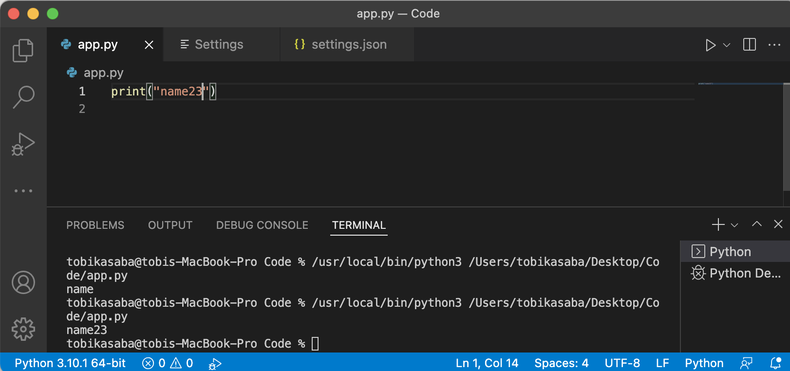 只有在我用python文件运行它之后,它才会改变。因此,我必须在终端中运行它,以便显示正确的输出。代码运行程序只反映终端中的最后一个输出。
