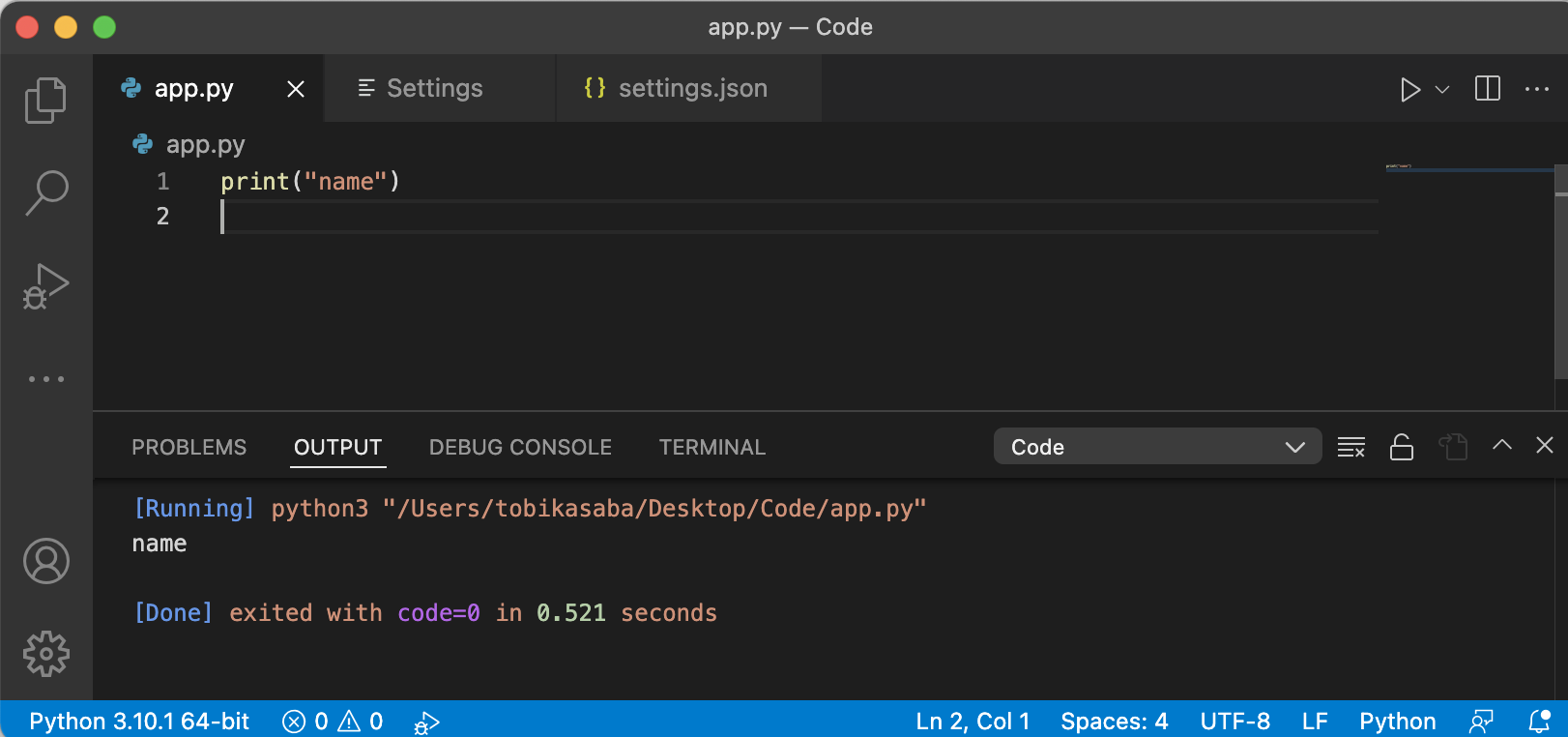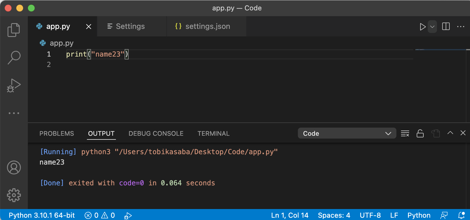 然后我使用coderunner扩展运行它,它可以工作。