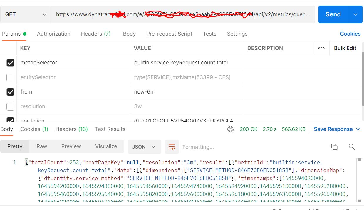 https://www.dynatrace.xx.com/e/1234-6539-4ea3-aab8-a9985ae713d4/api/v2/metrics/query?metricSelector=builtin:service.keyRequest.total.count&entitySelector=type(SERVICE)&from=now-6h&resolution=3w&api-token=<token_name>