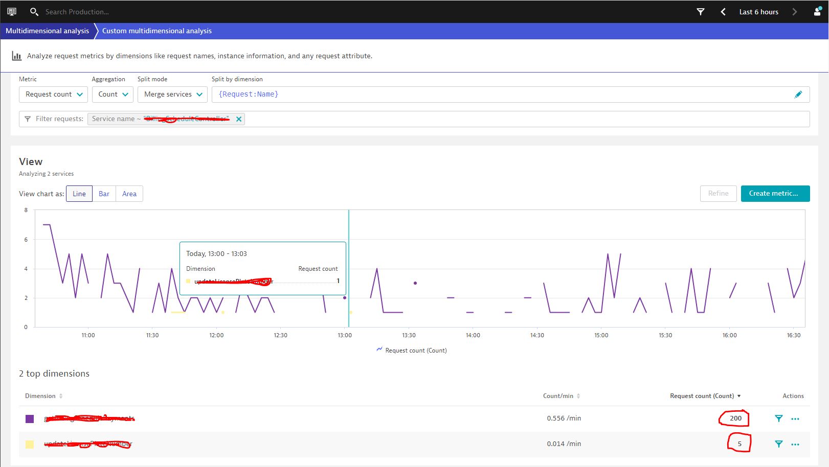 度量有一个维度service,即您可以通过服务名称上的filter过滤特定的服务。