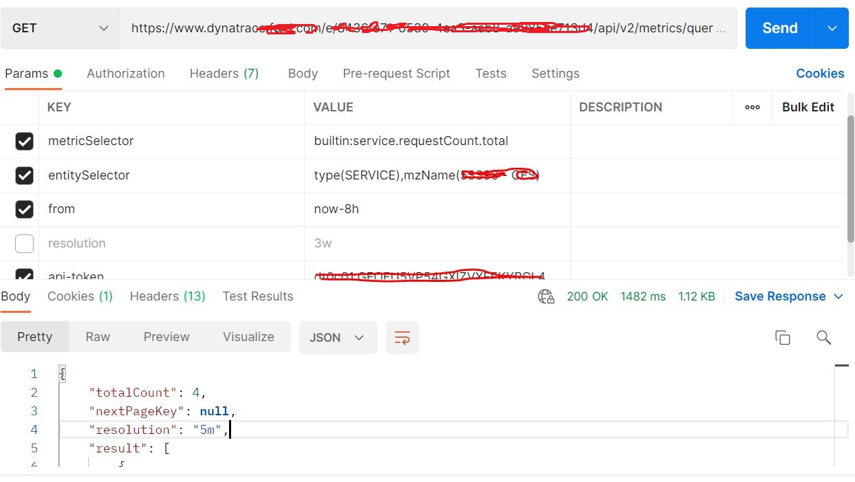 https://www.dynatrace.xx.com/e/12345-6539-4ea3-aab8-a9985ae713d4/api/v2/metrics/query?metricSelector=builtin:service.requestCount.total&entitySelector=type(SERVICE)&from=now-6h&resolution=3w&api-token=<token_name>