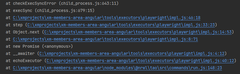 当我运行nx run my-app:e2e时,执行器被执行,但是由于某种原因,剧作家没有启动。相反,我看到了一个错误。