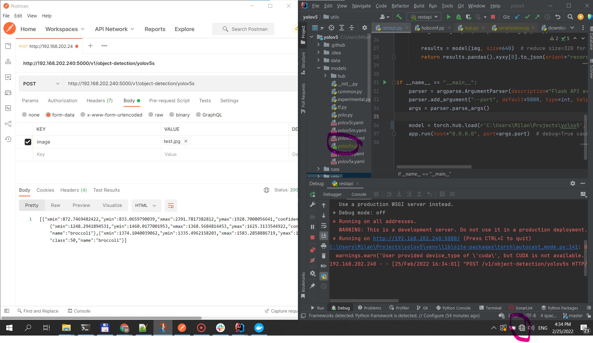 我能够在带有互联网连接的PC上运行带有yolov5的烧瓶应用程序。我遵循了yolov5文档中提到的步骤,并使用了以下文件:yolov5/utils/flask_rest_api/restapi.py