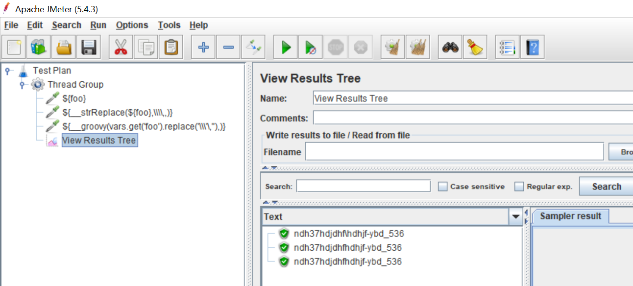 ${__strReplace(${foo},\\\\,,)}__strReplace()函数可以使用JMeter插件管理器作为自定义JMeter函数包的一部分安装