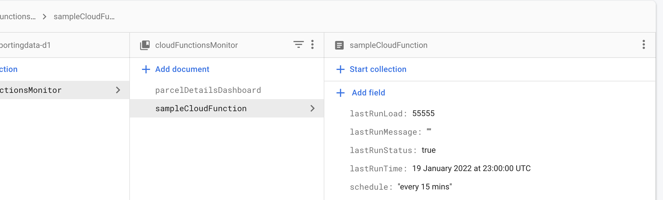 我使用这个组件将数据推送出去,但是我无法从数据库中获取文档名,即CloudFunctionMonitor下的“CloudFunctionMonitor”(请见图)并显示它。