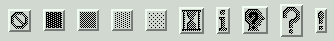 上面的图形显示带有标准位图的Button小部件。从左到右,它们是“错误”、“灰色75”、“灰色50”、“灰色25”、“灰色12”、“沙漏”、“信息”、“问题”和“警告”。 你可以使用你自己的位图。任何.xbm (X位映射)格式的文件都可以工作。代替标准位图名称,使用字符串'@‘后面跟着.xbm文件的路径名。