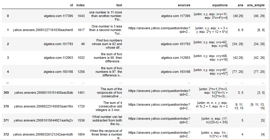我想用机器学习来解决一个数学题。如下图所示:使用“text”列,预测“ans_simple”列。