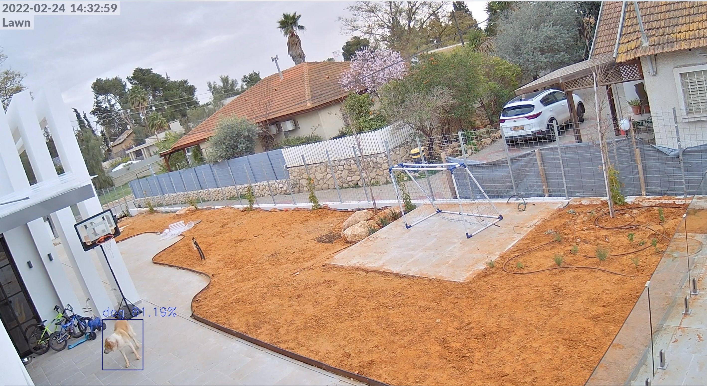 我想知道当狗真正踏进草坪的时候,我应该如何检测,而不仅仅是在后院闲逛。我目前天真的做法是创建一个多边形,以跟踪草坪的轮廓在视频馈送,并看看跟踪狗的包围盒是否主要在这个草坪多边形。
