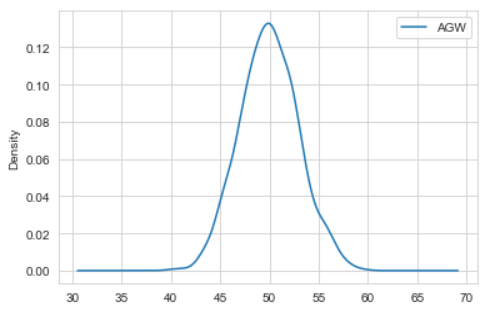 df.plot(kind = 'density'); # or df["AGW"].plot(kind = 'density');这意味着: