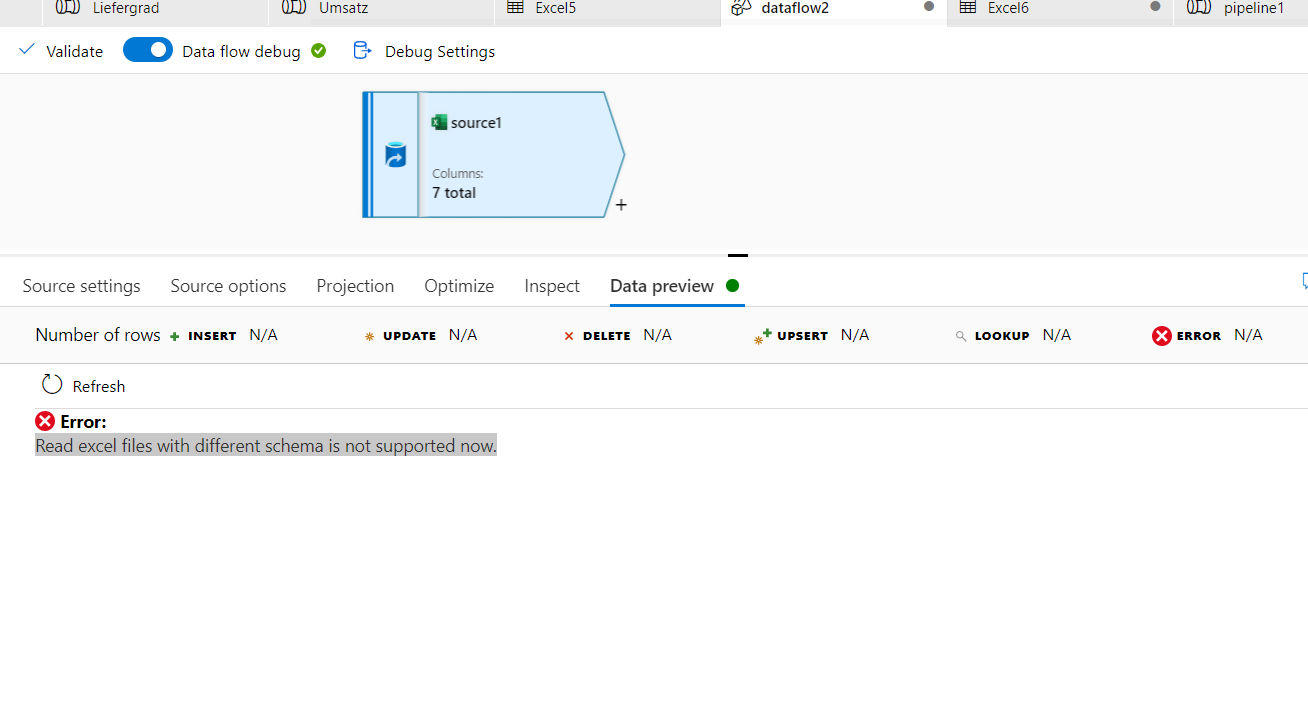 我在数据湖中有很多excel文件。我试图在数据流中读取数据,并使其低于错误。