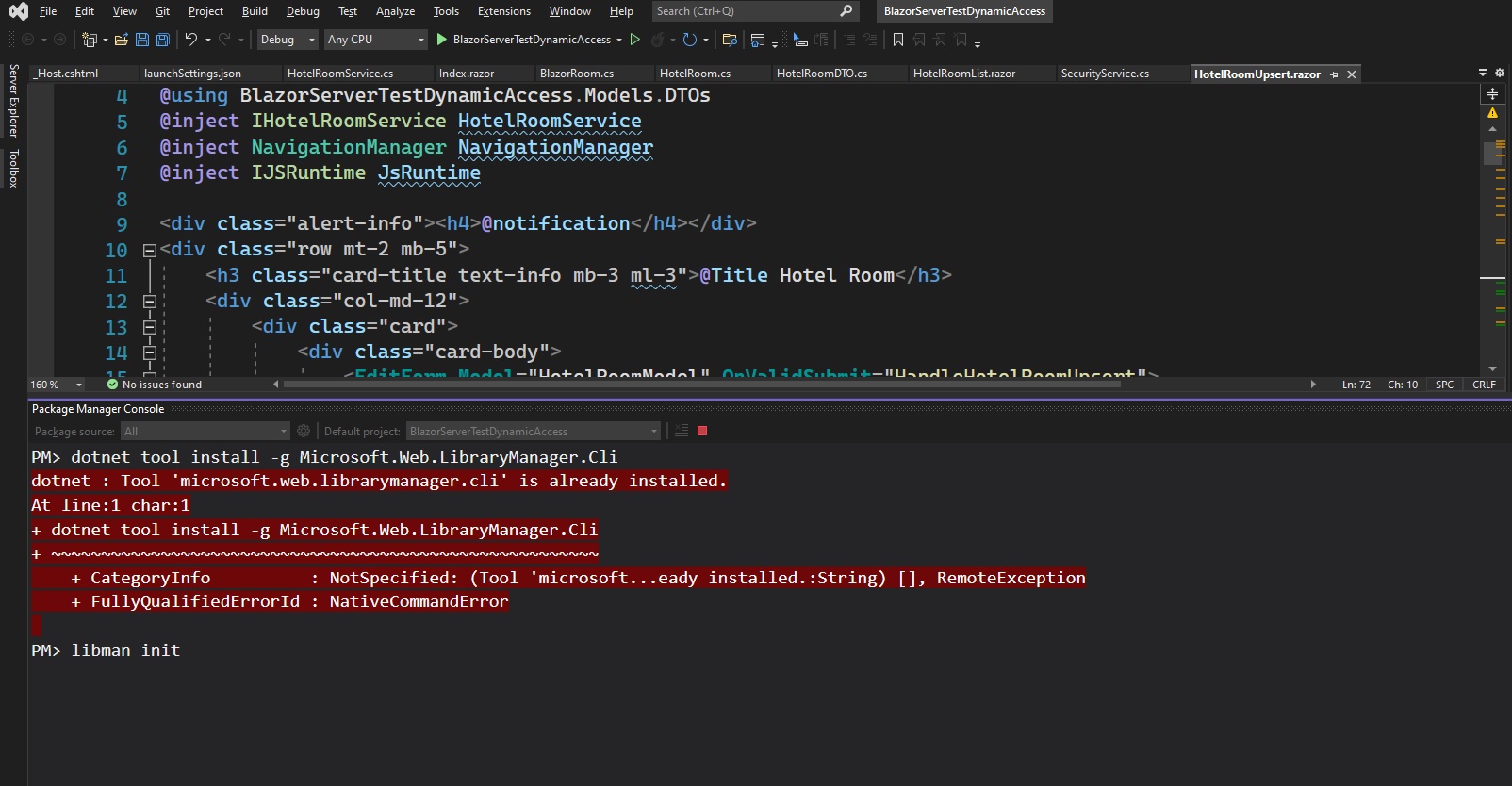 libman : libman.json was not `found:C:\Users\user\source\repos\BlazorServerTestDynamicAccess\libman.json`我怎样才能解决这个问题?
