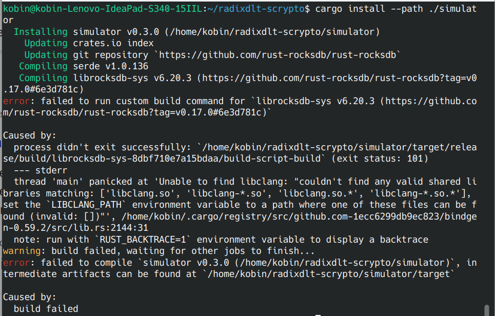 它似乎找不到嘎吱作响。您应该安装clang和它的开发包,否则这个机箱就不能用它来构建,显然它需要这样做。