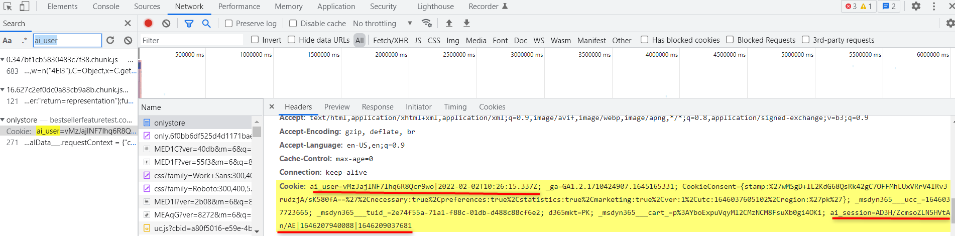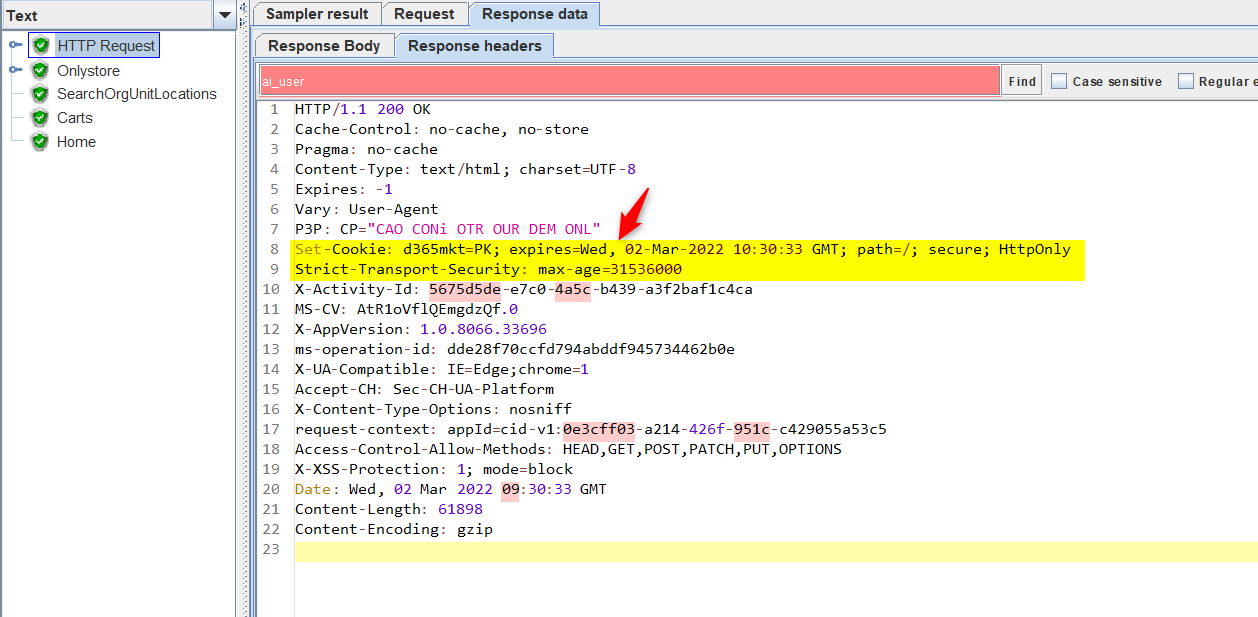 我想要cookies值,即、ai_user和ai_session,并将它们传递给HTTP请求头中的UserSessionId & AppSessionId。那么,我如何获得这些价值呢?我已经在脚本中使用HTTP CookiesManager来处理cookie,但无法获得ai_user & ai_session cookies值。
