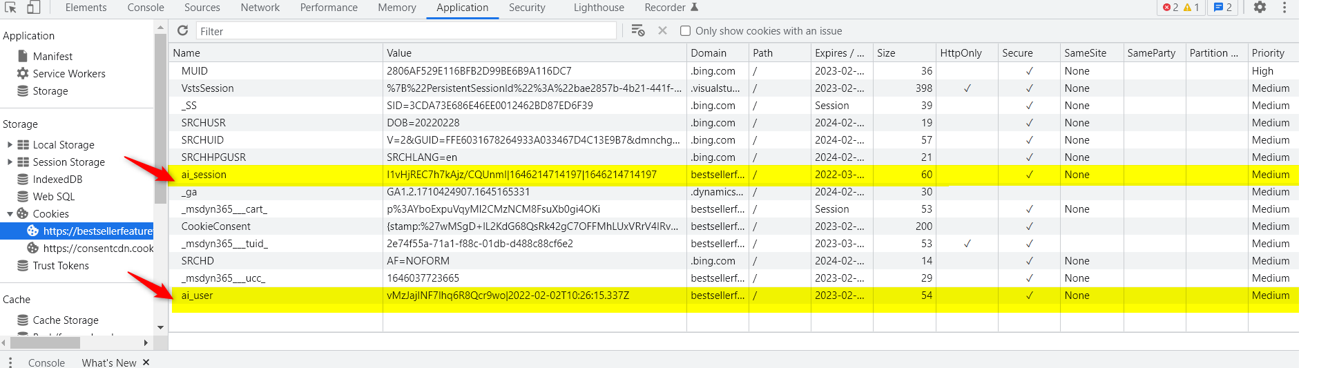 浏览器显示当我们访问家乡请求时的所有cookie。