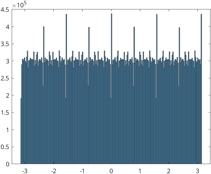 histogram(t, -pi:stp:pi);这里是Python&NumPy: