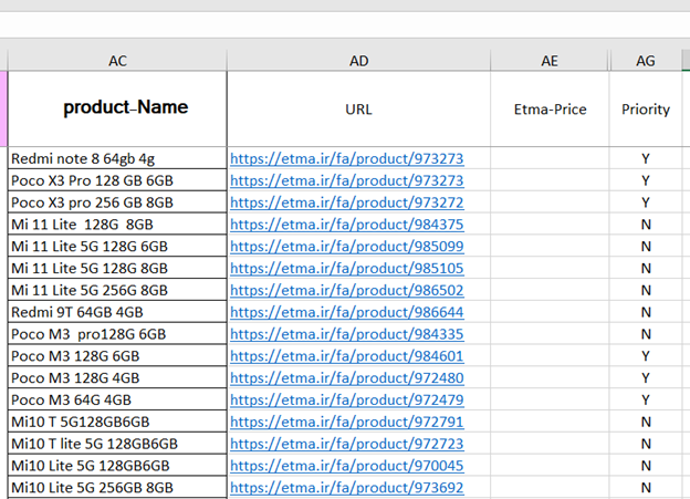 或者,您可以在AD和AG之间提取所有列,然后在循环时简单地引用每一行上的列。