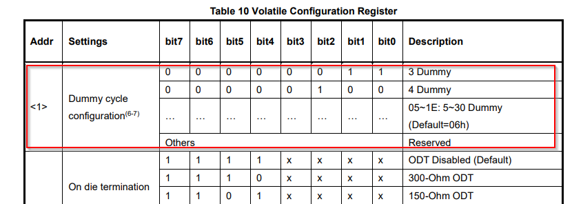 如何设置像gd25b512me这样的NOR闪存的虚拟周期?还是仅仅这样做就足够了(对于命令0x9E)