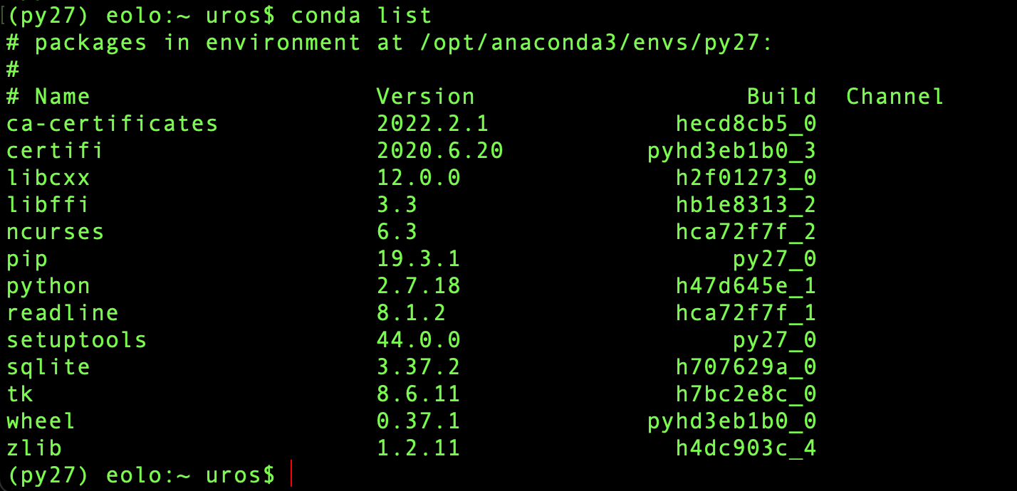 which python给予- /opt/local/bin/pythontype python给予- python是/opt/local/bin/pythonecho $PATH给予- /opt/local/bin:/opt/homebrew/bin:/opt/homebrew/sbin:/Users/uros/Desktop/iraf-main/unix/hlib/ecl.sh://Users/uros/.iraf/bin:/opt/anaconda3/envs/py27/bin:/opt/anaconda3/condabin:/usr/local/bin:/usr/bin:/bin:/usr/sbin:/sbin:/opt/X11/bin:/Library/Apple/usr/binwhich python给出- python是/opt/local/bin/pythonecho $PATH给出的-/opt/local/bin:/opt/ /opt/local/bin/pythontype python/bin:/opt/homebrew/sbin:/Users/uros/Desktop/iraf-main/unix/hlib/ecl.sh://Users/uros/.iraf/bin:/opt/anaconda3/bin:/opt/anaconda3/condabin:/usr/local/bin:/usr/bin:/bin:/usr/sbin:/sbin:/opt/X11/bin:/Library/Apple/usr/bin运行conda list输出后如下所示: