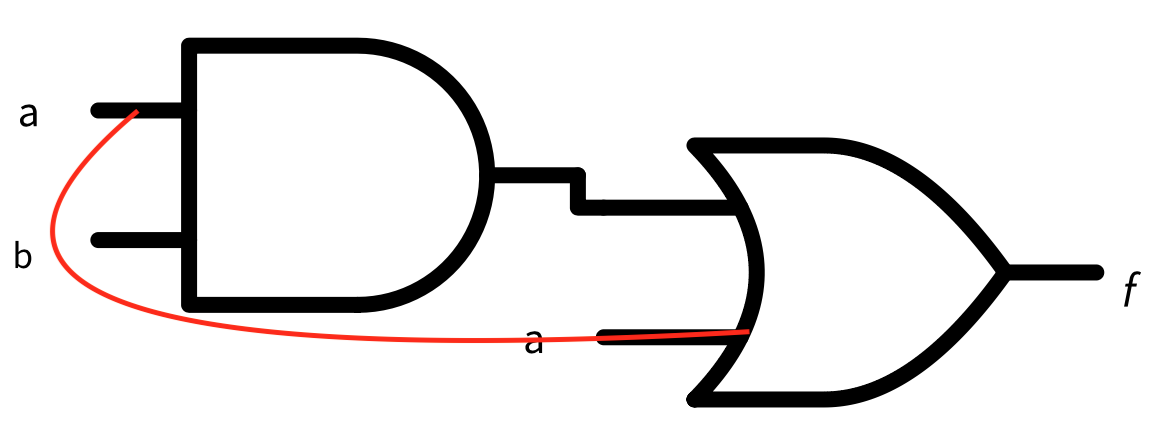 我想知道是否有可能用示意图来绘制一个逻辑电路及其扇形,例如f=(a和b)或a,这里给两个门都用'a‘分支。使用示意图的文档,可以生成如下示例电路:
