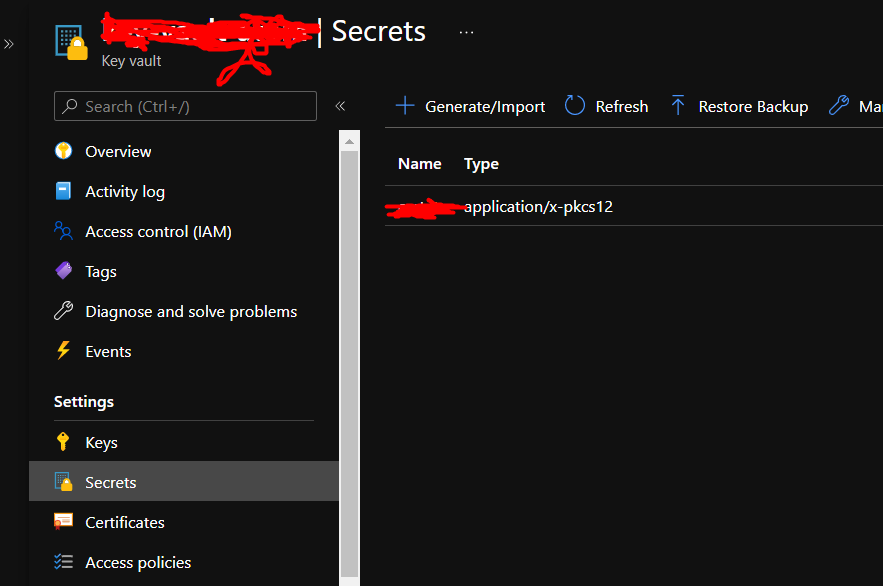我从Azure应用服务证书购买了一个WildCard ssl证书。我也有AKS集群。我想把它藏在秘密里,用在入口处。购买后,将秘密文件存储在Azure密钥库中。我下载了它,然后导入创建Azure密钥库证书。然后,使用akv2k8s,我在AKS中创建了一个秘密文件,并在入口中使用它。在我的应用程序抛出'err_cert_authority_invalid‘错误之后。我做错什么了吗??没有那么多关于ssl和入口的文档。在许多文章中,他们使用“让加密”或“证书管理器”。