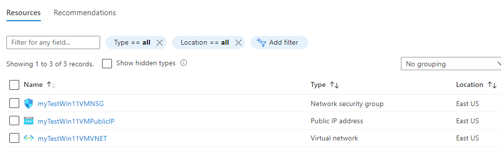 az vm delete --name MyTestWin11VM --resource-group myTestRG -y 但是,当我浏览到门户时,资源组仍然显示以下与VM相关的资源。