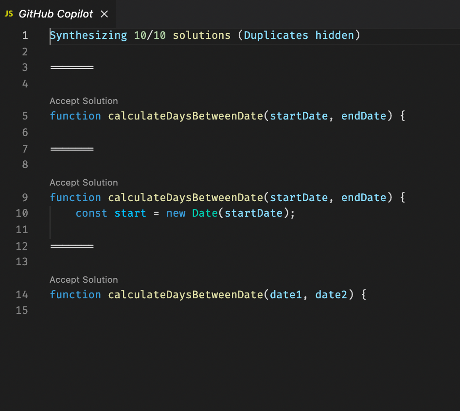 我已经激活了github副驾驶,它工作得很好,但是,在输入时,它只显示了一行建议。经过我所有的尝试,它仍然显示出一条建议。但我想看看多行建议。