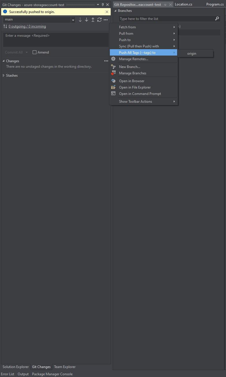 有人知道如何在Visual 2022中推送标签吗?因为我换了多个回购模式,所以哪儿都找不到。解决办法是通过命令行推送标签。