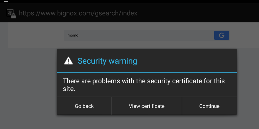 首先,我得到了我的ip地址,即192.168.1.4,并在所有接口中设置了播放。然后我修改了nox无线网络以代替我的打嗝。然后,我开始成功地接收请求,但当我尝试访问任何https网站时:这条消息显示: