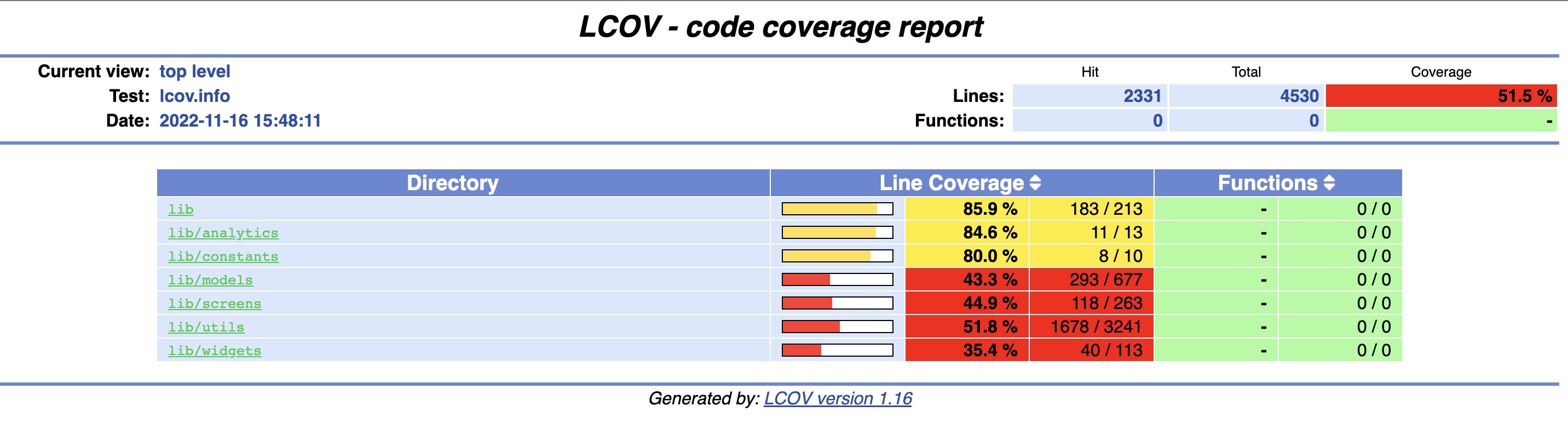 一旦您可以在lcov.info中生成覆盖报告(行覆盖率)。然后,您可以将web报告创建为: