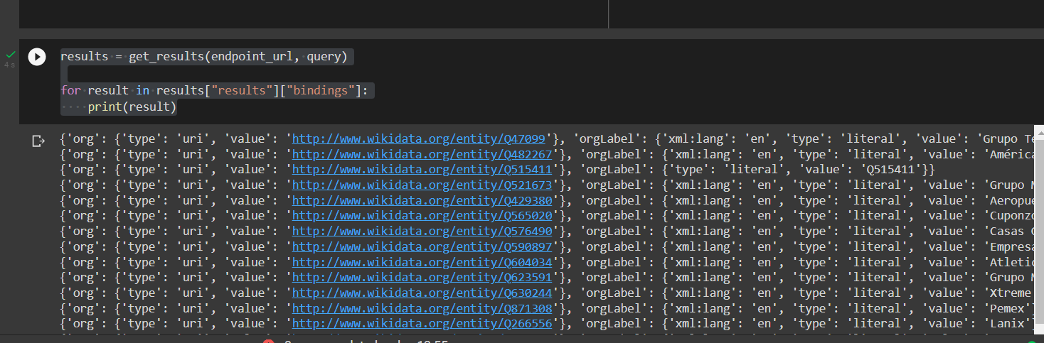 "http://www.wikidata.org/entity/Q521673","Grupo Modelo"当然,您可以通过python直接获得相同的结果: