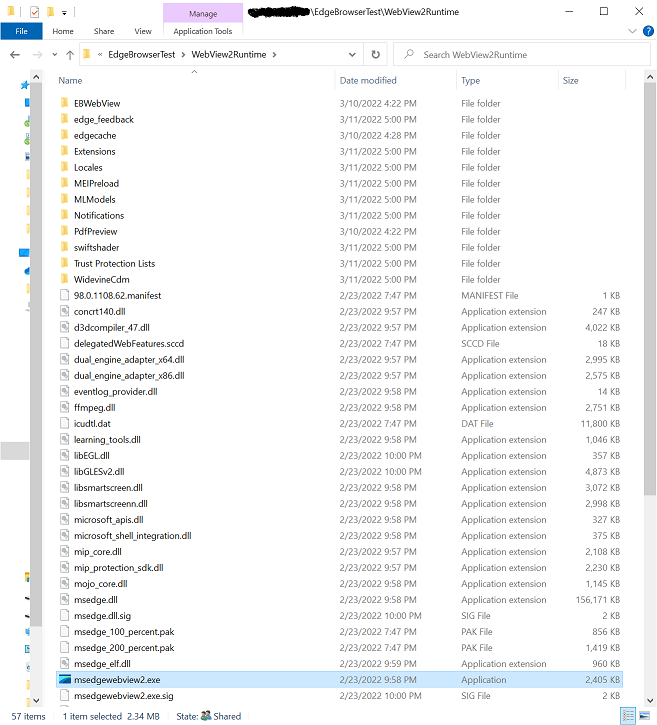 MyEdgeBrowser.BrowserExecutableFolder := ExtractFileDir(Application.ExeName) + '\WebView2Runtime';在上面所引用的路径中,我有一个带有固定版本运行时和所有支持文件和文件夹的完整安装的msegewebview2.exe。这是我下载并解压的文件: