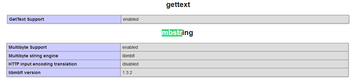 我还使用phpInfo检查是否检测到gettext和mbstring扩展。
