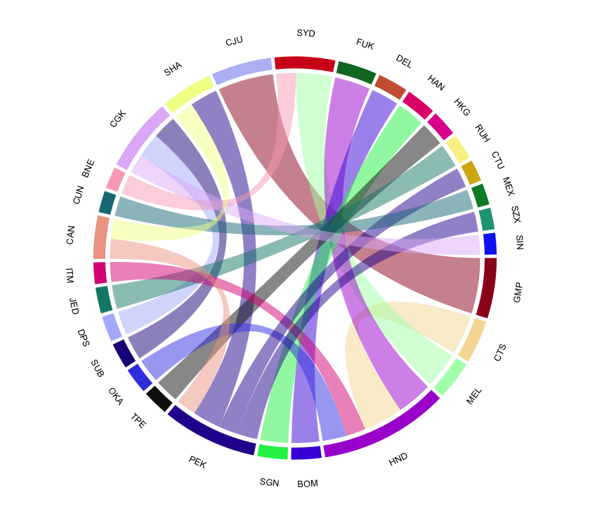 routes = data.frame(Origin = c("GMP","CTS", "MEL","HND","BOM","SGN","PEK","TPE",