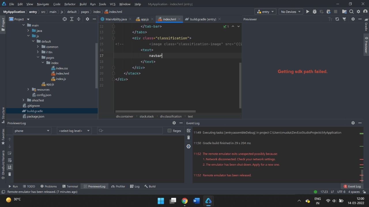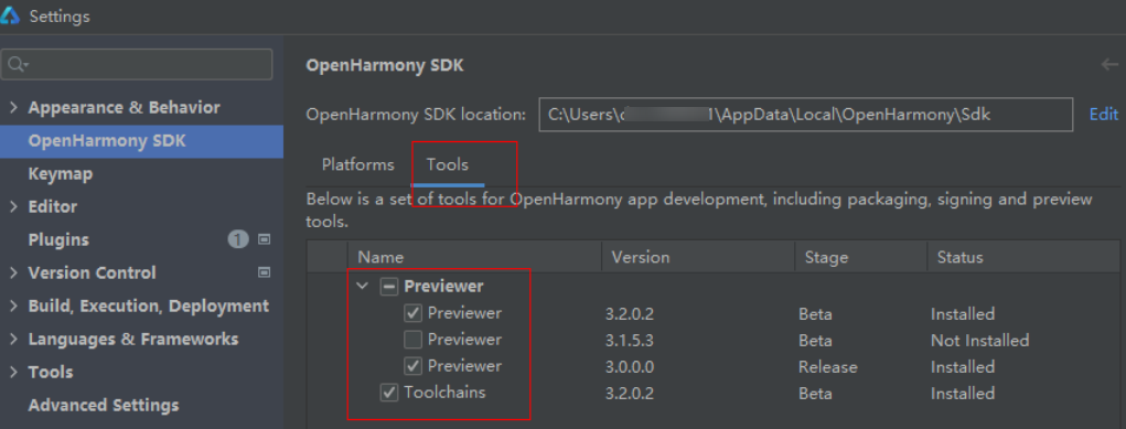 我有一个与安装预览程序有关的问题。当我安装DevEcoStudio版本3.0.0.800时,预览器没有安装。在打开预览器时,它显示的错误是“获取SDK路径失败”。