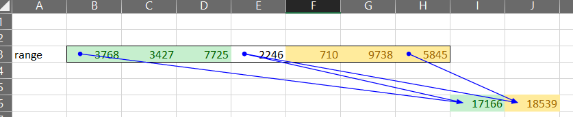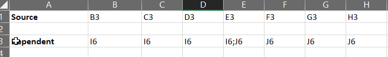 'then add first dependent of first range cell in B3, second in C3 etc