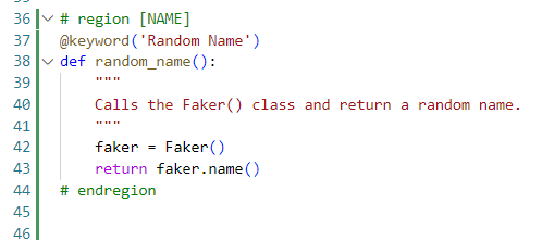 但是对于您的.txt文件,我不认为它会起作用,除非尝试为RobotFramework关键字设置一个自定义缩进,以便能够使用<!-- #region -->,<!-- #endregion -->