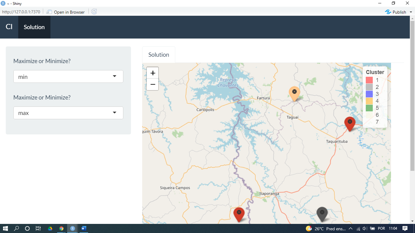 我使用两种多准则方法来找到生成映射的簇号。方法有VIKOR法和TOPSIS法。对于每个方法,我需要知道标准的目标是什么,即是最大化(max)还是最小化(min)。我有两个条件,所以我创建了两个selectInput,供用户选择是max还是min。对于VIKOR方法,我能够使用selecInput进行这种调整,而不需要手动将标准目标放在代码中(如您所见,我将#放在maxmin <- c('min' ,'max')中)。好的,到目前为止。