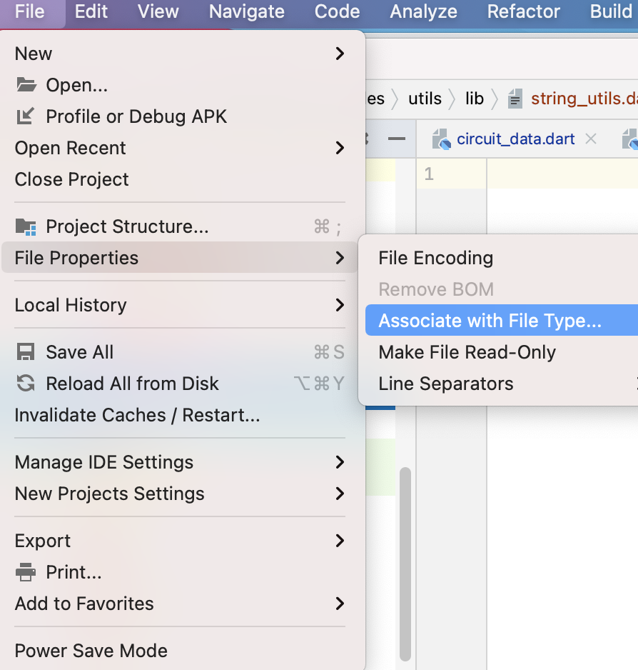 选择项目导航器中的文件,然后转到菜单文件>文件属性>关联文件类型.